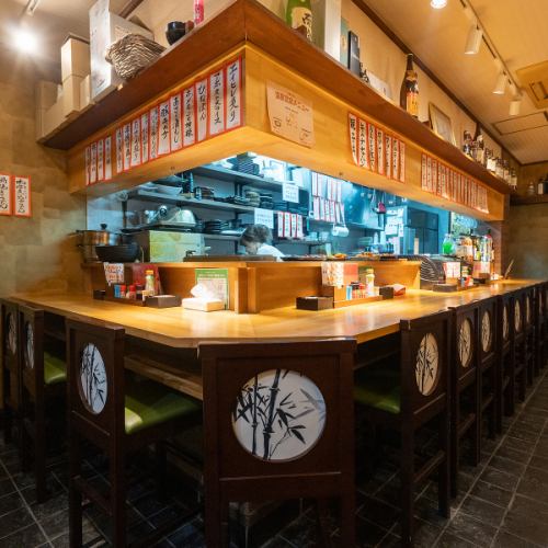 【カウンター席10席ご用意しております】目の前で調理される料理の様子を楽しめる特等席!シェフの技を間近で見ることができ、焼きたての串カツやおでんが運ばれてくる瞬間を楽しむことができます。カウンター席は一人でも気軽にご利用いただけるため、仕事帰りにちょっと一杯という方にも最適です。